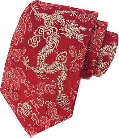 Men's Novelty Tie Unique Dragon Peony Embroidery Woven Luxury Wedding Formal Necktie Gift