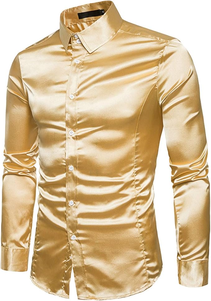 Mens Paisley Satin Dress Shirts Regular Fit Solid Silk Casual Long Sleeve Dance Party Shirt Button Down Tuxedo Luxury Shirt