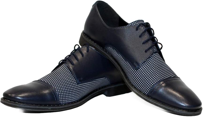 Modello Madella - Handmade Italian Mens Color Navy Blue Oxfords Dress Shoes - Cowhide Smooth Leather - Lace-Up