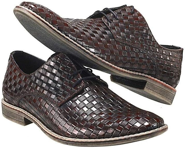 Modello Pistoia - Handmade Italian Mens Color Burgundy Oxfords Dress Shoes - Cowhide Embossed Leather - Lace-Up