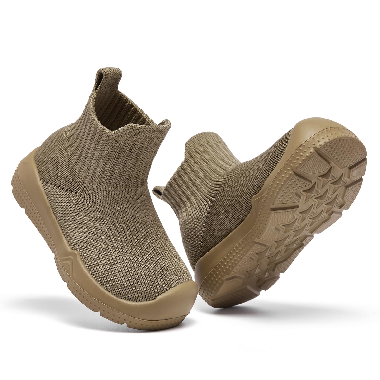 • Friendly Sock-like Upper: Sock-like stretchy textile construction upper hugs the foot to keep them comfortable and flexible when babies are on the move. Baby sock shoes made of soft fabric knit are also friendly to the skin, healthy, and very safe for infant babies.