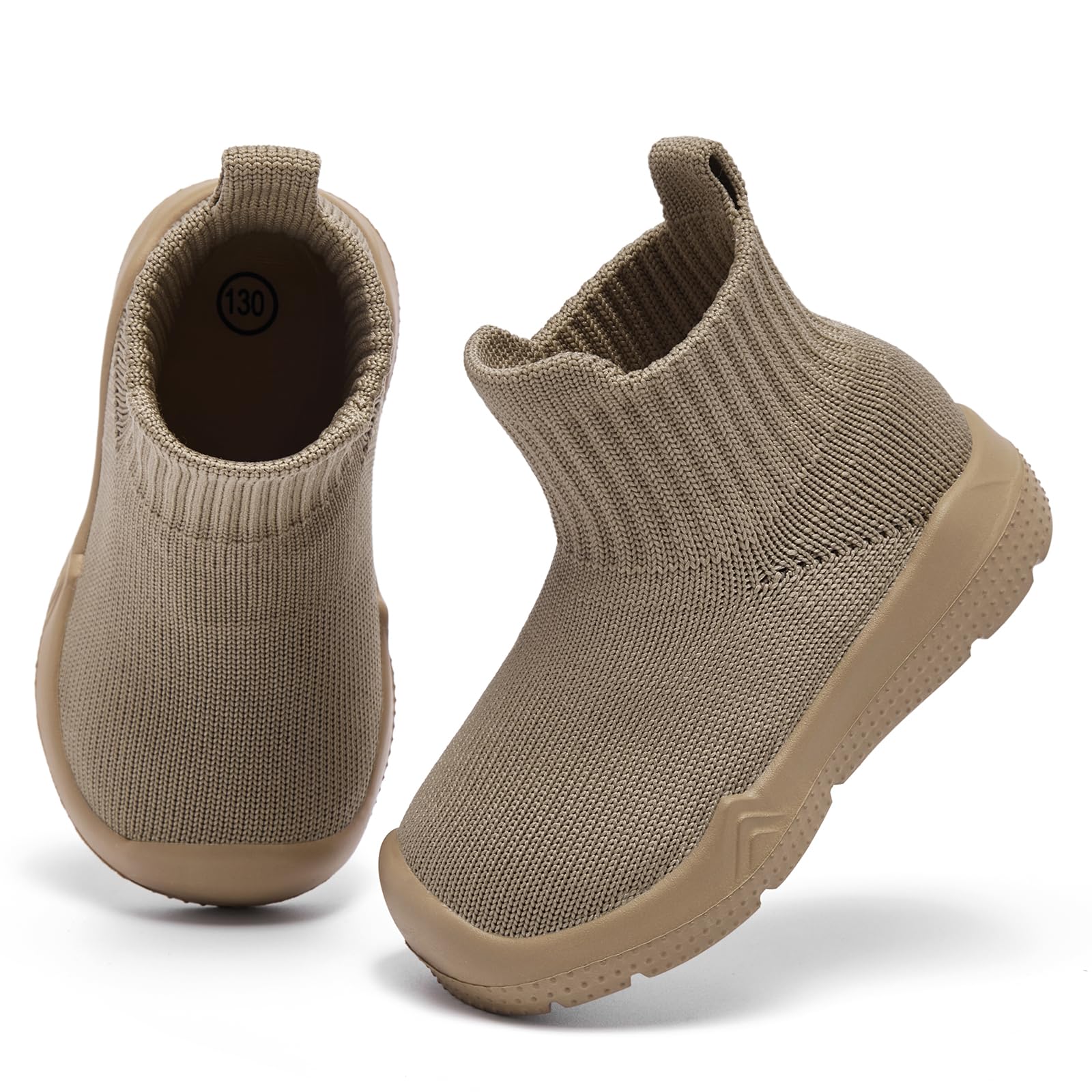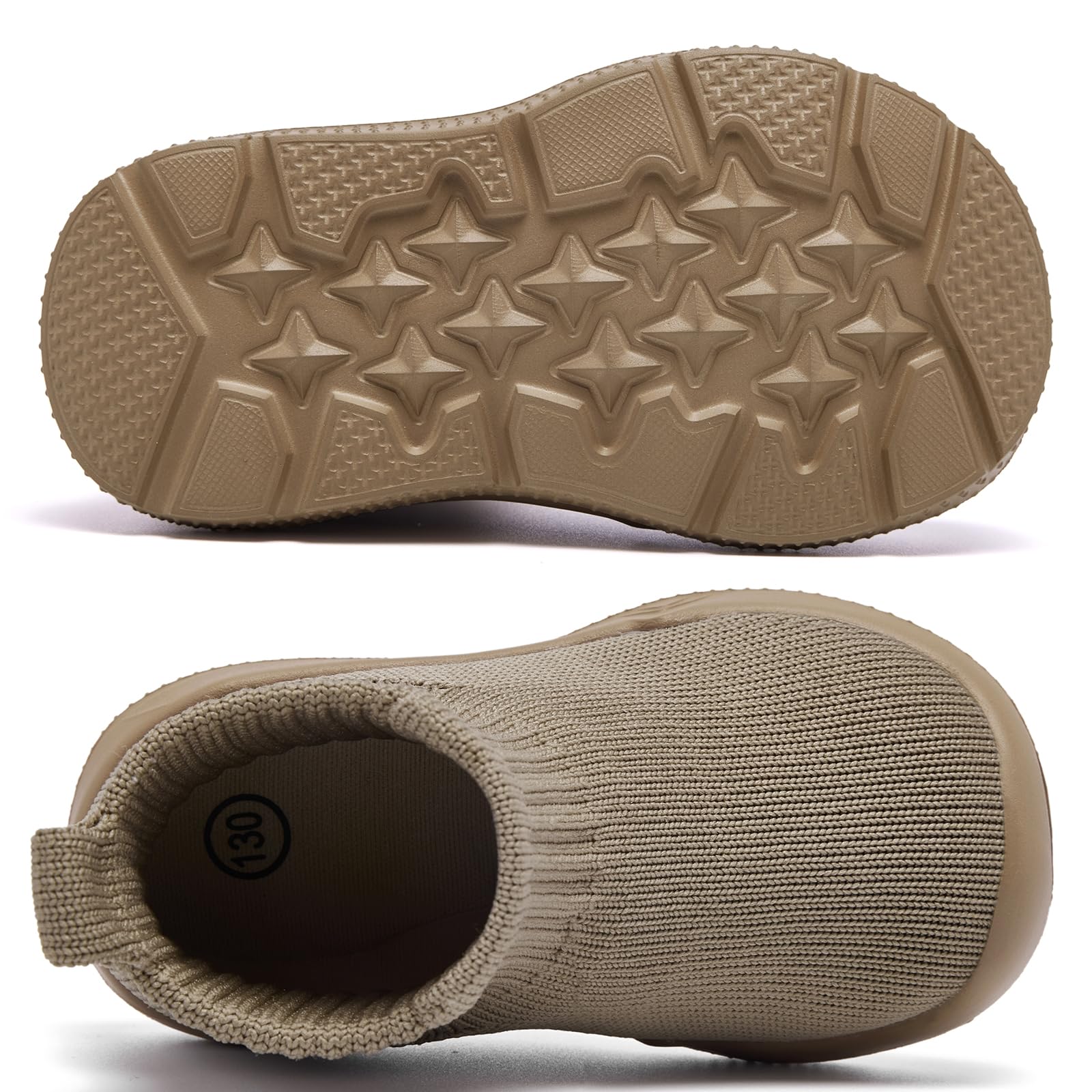 MORENDL Baby Shoes Toddler Walking Sock Shoes Infant Boy Slip On Sneakers Girl Tennis Shoes Brown 12-15 Months