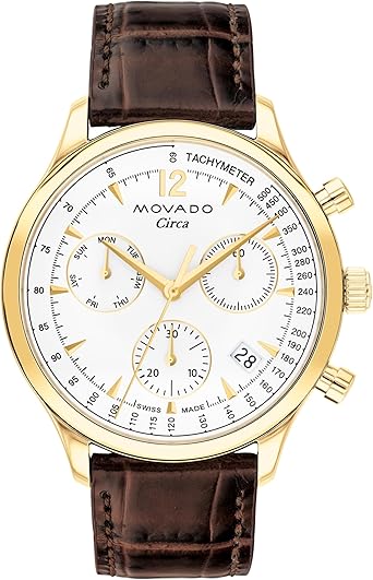Movado Heritage Series Circa Men's Watch - Swiss Quartz Chronograph Movement, Leather Strap - 5 ATM Water Resistance - Classic, Luxury Fashion Timepiece for Him - 43mm
