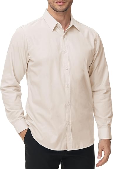 MUSE FATH Men's Long Sleeve Slim Fit Dress Shirts Stain Shield Solid Formal Shirt Business Casual Button Down Shirts