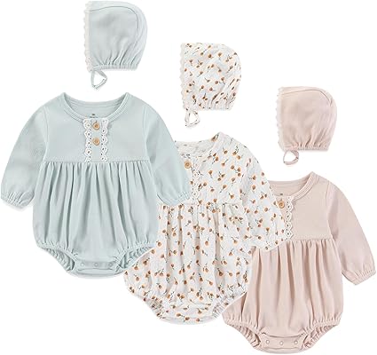 Newborn Baby Girl Bodysuit Suit Baby Clothes Long Sleeve 3 Outfit Bundle Mix Match