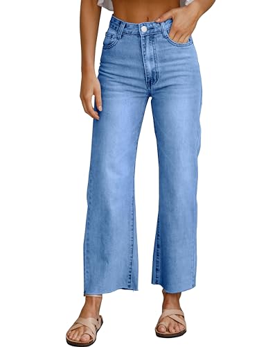 PLNOTME Women's High Waisted Baggy Jeans Boyfriend Wide Straight Leg Raw Hem Casual Denim Pants Blue