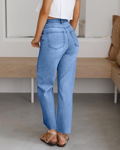 PLNOTME Women's High Waisted Baggy Jeans Boyfriend Wide Straight Leg Raw Hem Casual Denim Pants Blue