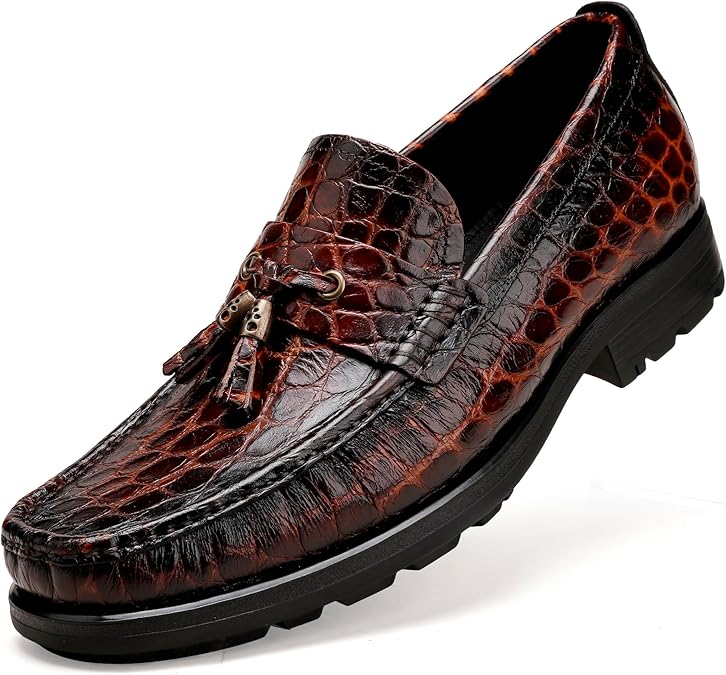 Premium Leather Tassel Loafer for Men, Classic Alligator Printed Thick Sole Dress Loafers Shoes for Mens