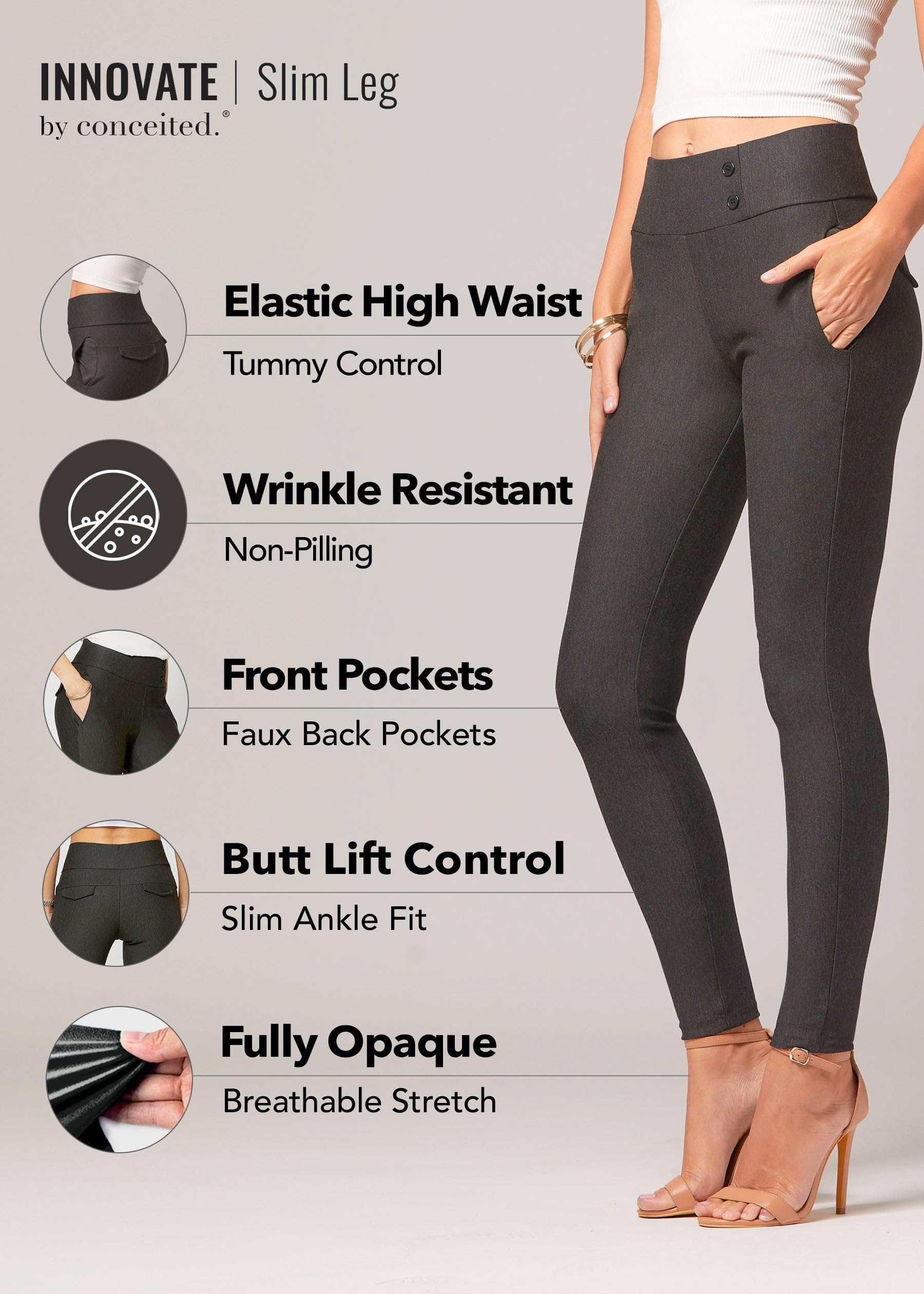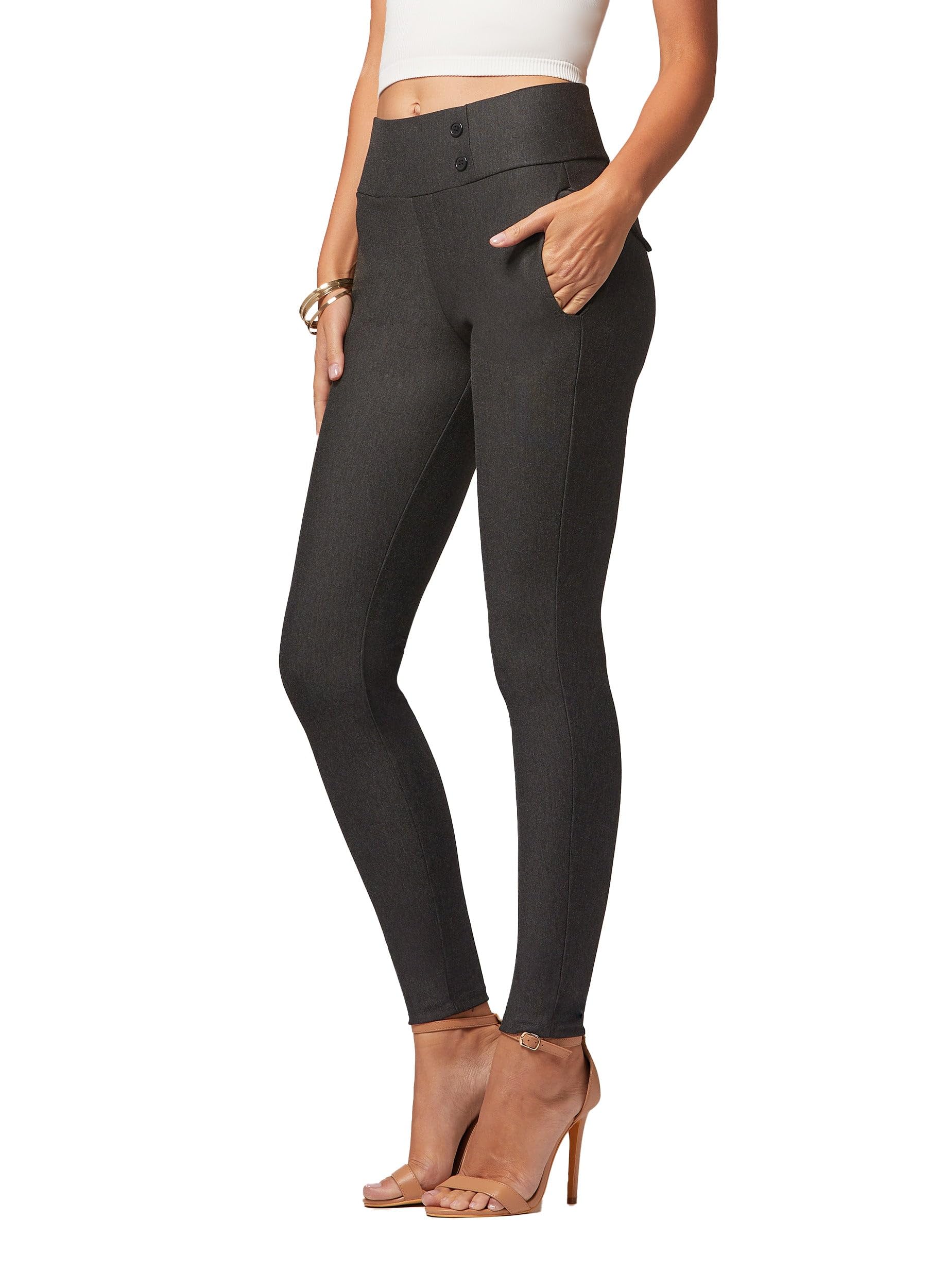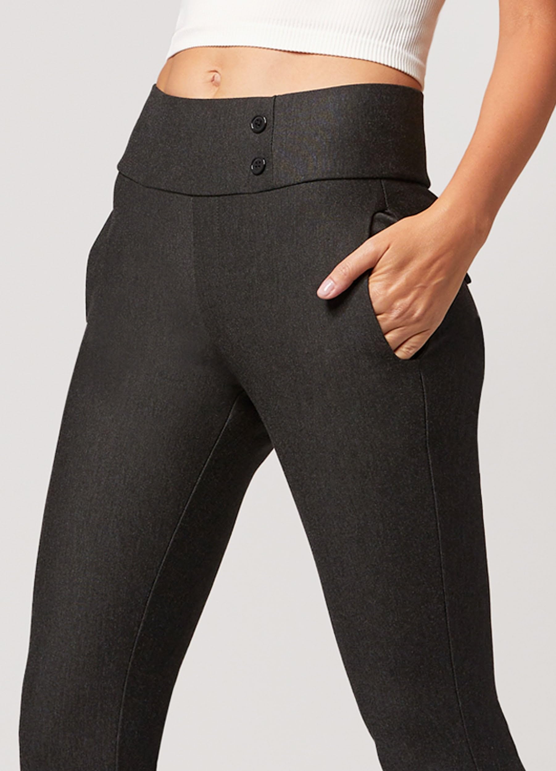 Premium Women's Stretch Dress Pants - Wear to Work - Ponte Treggings - Slim Leg with Buttons - Charcoal Grey - DP-SlimButtons-Charcoal-XS