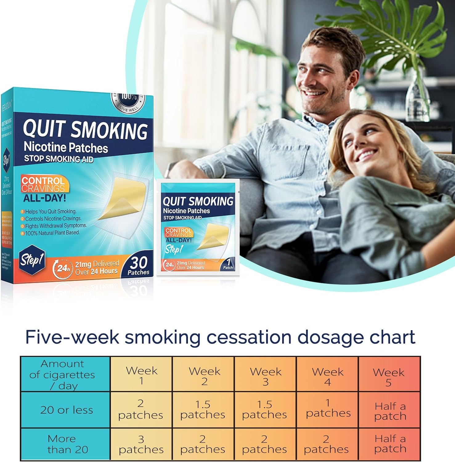 Quit Smoking Patches Step 1 Stop Smoking Aids Patches, 30 Count Quit Smoking Stickers That Work with 2 Weeks, Anti Smoking Patches 21mg