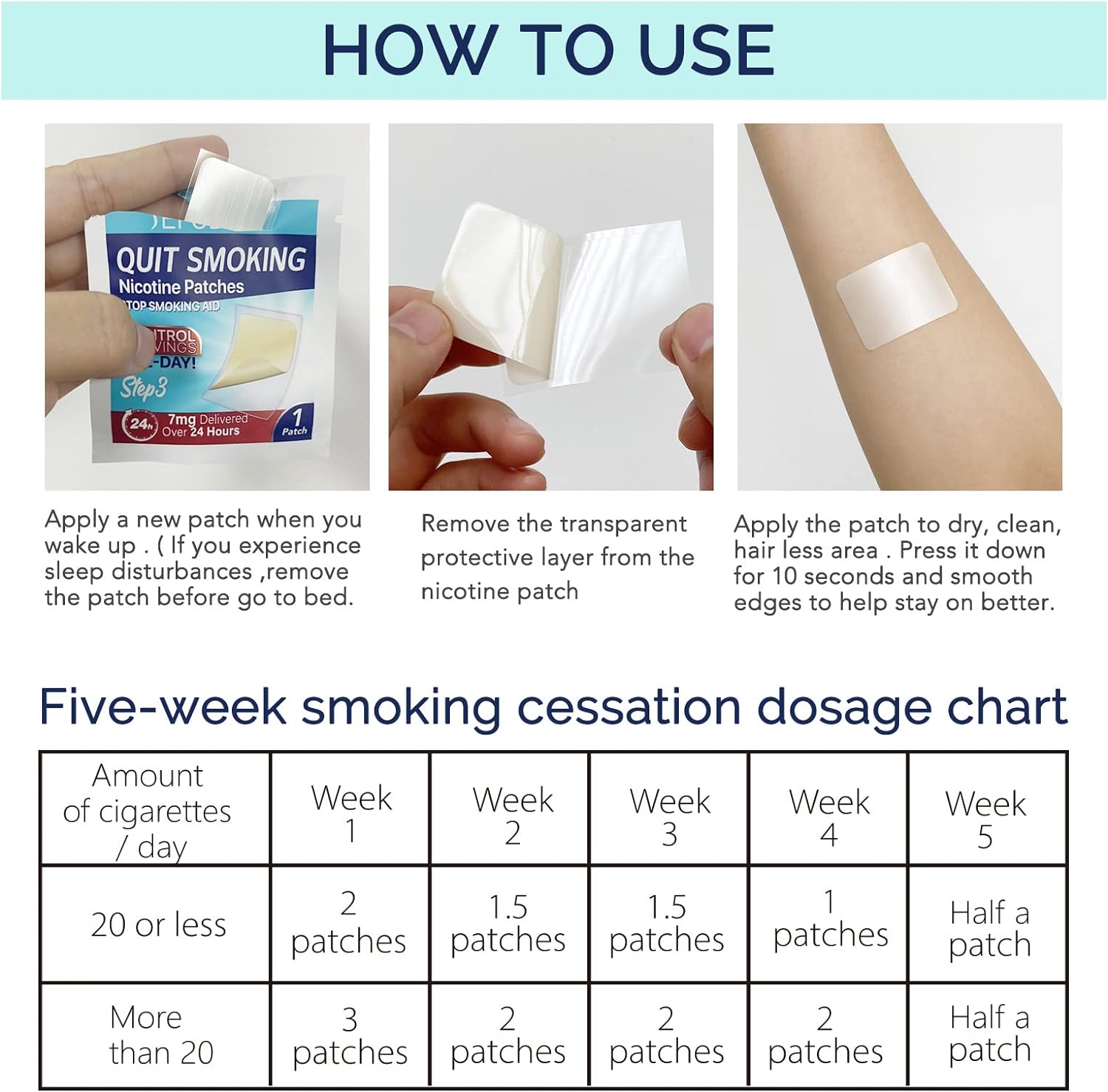 • Reduces Cravings - The quit smoking aid patches step 1 are made of thin, flexible material and are designed to adhere to the skin without causing irritation or discomfort, and release a controlled amount over a period of time, effectively help you quit smoking!
