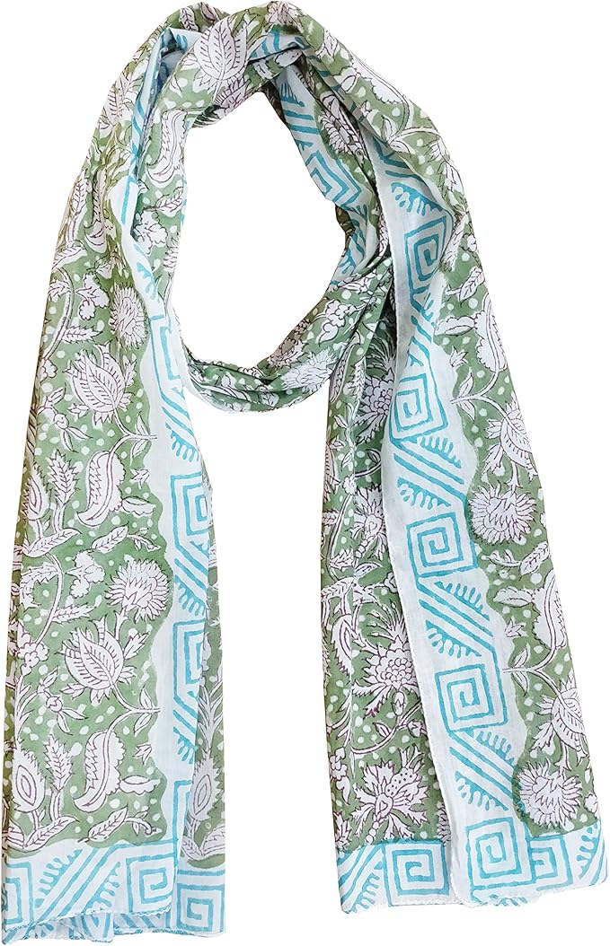 Rastogi Handicrafts hand block printed Indian traditional design 70x20 inch mini Stoll, Scarf and Sarong for girls 100% Pure cotton (Scarfs-26)