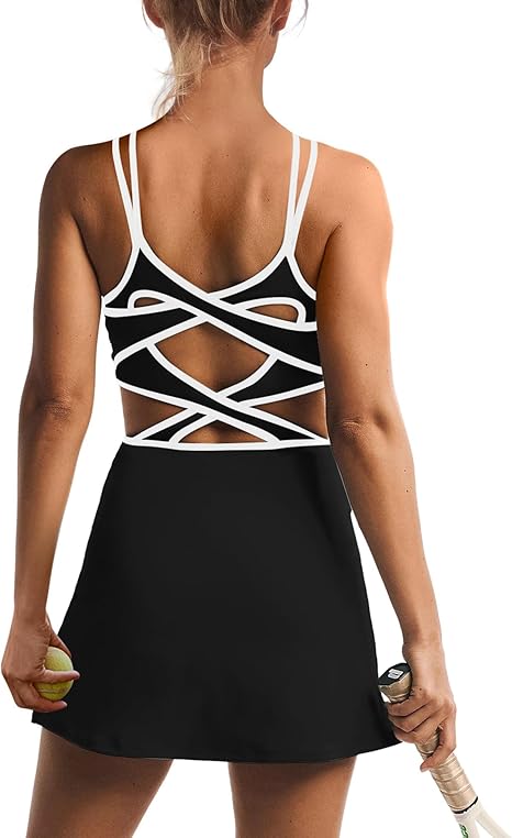 ReachMe Womens Tennis Dress Workout Dresses with Built in Shorts and Bra Athletic Romper Trendy Golf Outfits