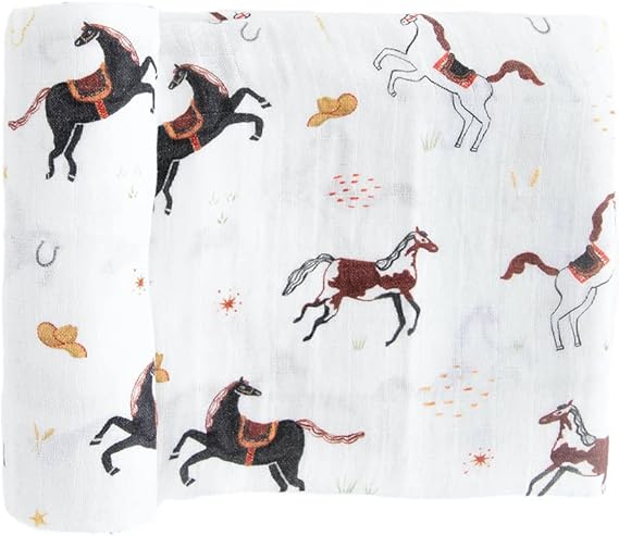 RED ROVR 100% Organic Cotton Muslin Swaddle | Newborn Receiving Blanket | Baby Wrap | Boy, Girl, Unisex | Soft, Lightweight, Breathable | Burping, Nursing | 44" x 44" | Howdy Horse