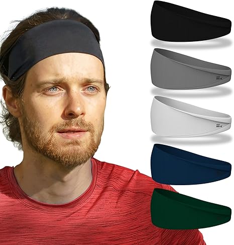 Relix Sports Headband (Pack of 5) Moisture Absorbing Workout Headband, Sweatband Headbands for Running, Cycling, Football, Yoga, Hairband for Men and Women