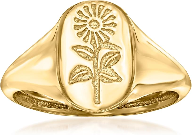 Ross-Simons Italian 14kt Yellow Gold Sunflower Signet Ring. Size 5