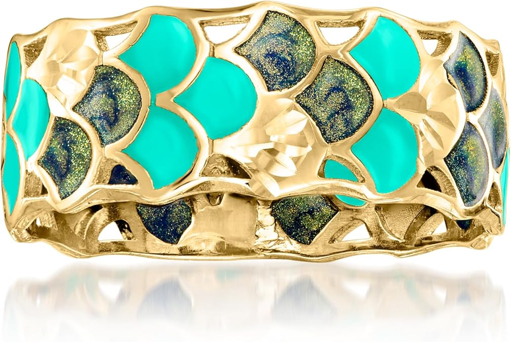 Ross-Simons Italian Multicolored Enamel Mermaid Scales Ring in 14kt Yellow Gold