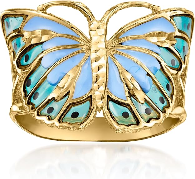 Ross-Simons Italian Tonal Blue and Black Enamel Butterfly Ring in 14kt Yellow Gold