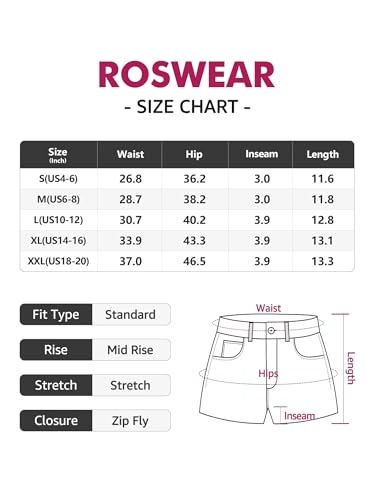 roswear Women's Summer Mid Rise Ripped Denim Shorts Stretchy Butt Lifting Jean Shorts