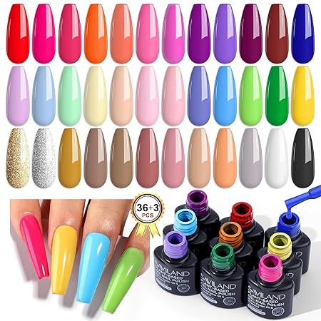 SAVILAND 36 Colors Gel Nail Polish Set: 39 PCS All Season Gel Nail Polish Sheer Glitter Solid Charm Colors with Base Gel Glossy Matte Top Polish Set Christmas Gifts for Manicure Nail Art