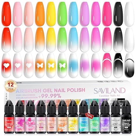 SAVILAND Airbrush Gel Nail Polish: 12 vitality Colors Set with Fine Mist Nail for Color Spray Perfect Nail Polish Nail Art Design