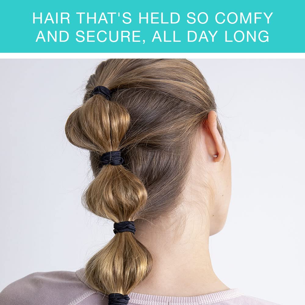 There’s a timeless beauty to Scunci No Damage Assorted Size Hair Elastics. In classic black, these simple hair ties are your secret to effortless, all-day hold. From short hair to long hair, thin hair to thick hair, soft elastics are perfect for any hair fashion. Metal-free elastic bands won’t slip – that means they’ll keep your ponytail tight whether you’re exercising, at your desk, or simply hanging out. The soft fabric prevents pulling and ripping your hair, and there’s no metal to snag or snarl. You can always count on easy-to-use Scunci hair elastics for soft yet strong hold no matter what your look, from carefree casual styles to sophisticated evenings out. The assorted sizes give you lots of options when it comes to hair styles. Use these soft hair ties to pull your long thick hair into a sleek, polished ponytail or elegant up do. Try twisting your long hair into a cute, casual top knot, knowing these soft elastics will keep your look in place. Breezy low ponytails will stay put, and the chic black style make these hair bands the right choice for a delicate bun on the nape of the neck. Different sizes make it easy to choose the right size for your hair style – choose a larger size for a thicker hair hold, or try the smaller size to secure your braids without a lot of bulk. These no slip hair ties are essential for damage-free hair in any activity. Less tangles also means these hair bands are great for kids, too. The 36-count package means you always have a lot of elastics on hand, whenever you need them. Leave some in your handbag, some in your desk drawer, some in your bathroom, or even some on your gear shift! You never know when you’ll need to put your hair up, and with Scunci, you’ll always be ready. Because of the chic, soft black style, you can even comfortably wear one on your wrist. From the makers of the original scrunchies, Scunci No Damage Hair Elastics are your go-to for everyday hair fashion.