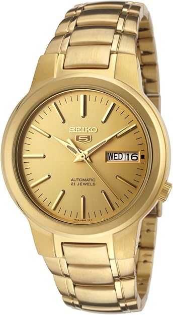 Seiko SNKA10K1 Men's 5 Watch, Automatic Winding, Gold Dial, Overseas Model, gold, Bracelet Type