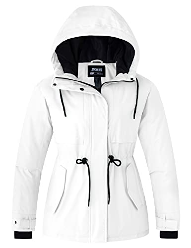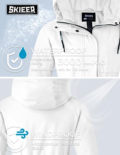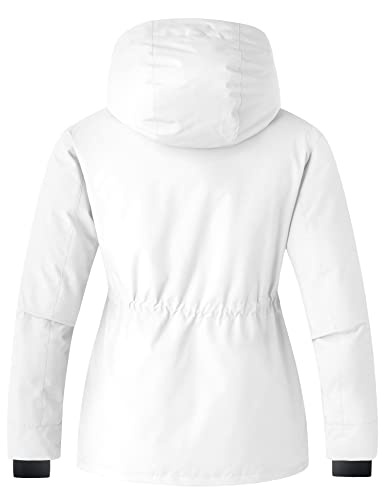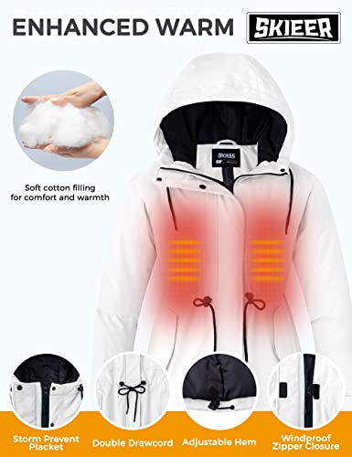 Skieer Women's Waterproof Ski Jacket Hooded Fleece Winter Jacket Warm Snow Coat(White-L)