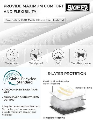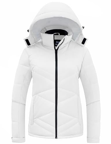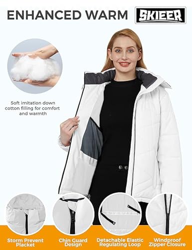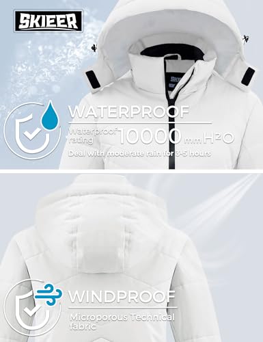 Skieer Women's Waterproof Ski Jacket Windproof Hooded Raincoat Warm Snow Coat White M