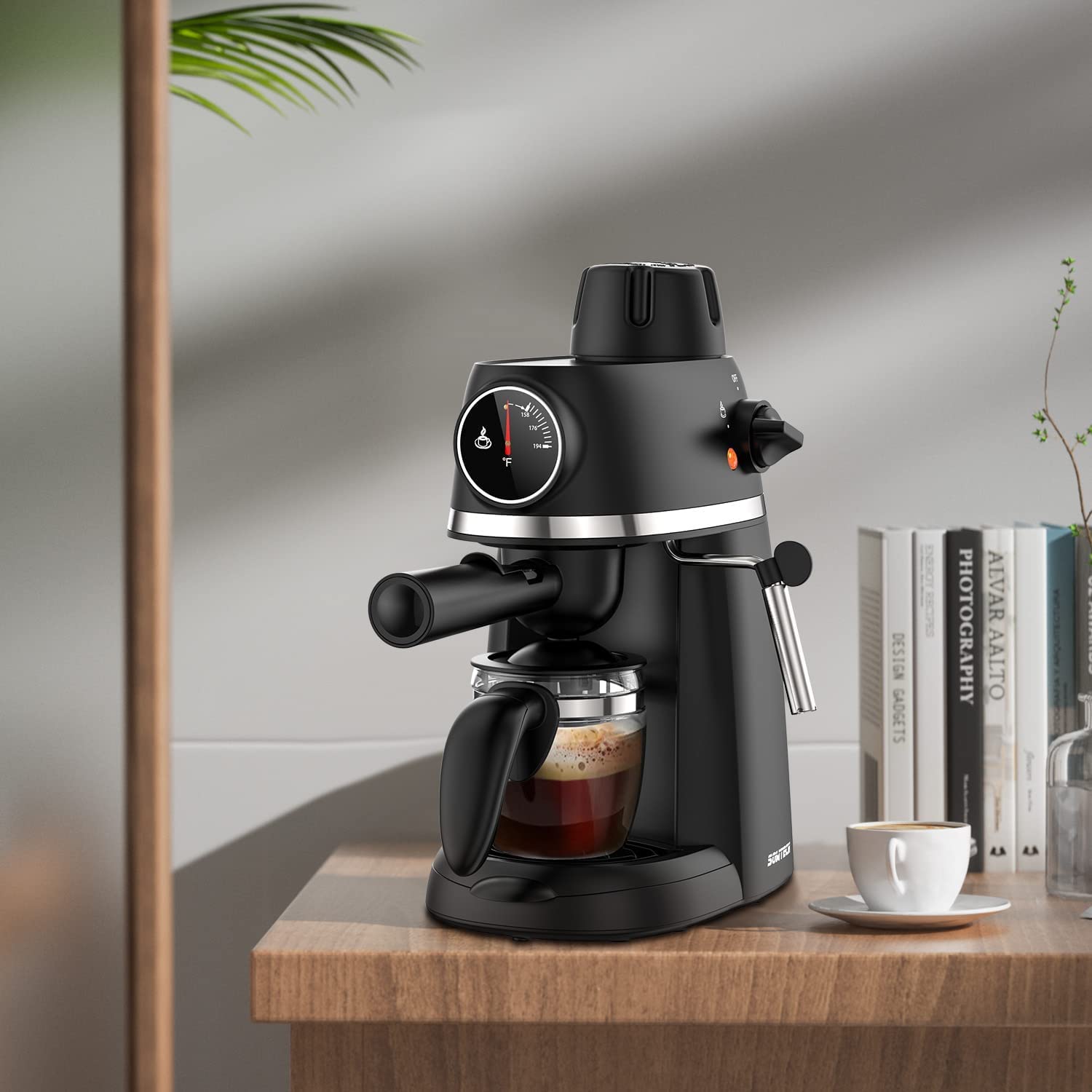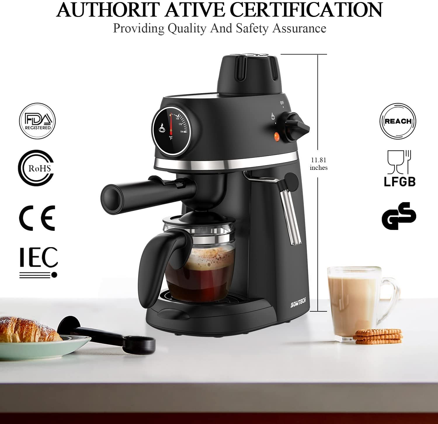 SOWTECH Espresso Coffee Machine Cappuccino Latte Maker 3.5 Bar 1-4 Cup with Steam Milk Frother Black