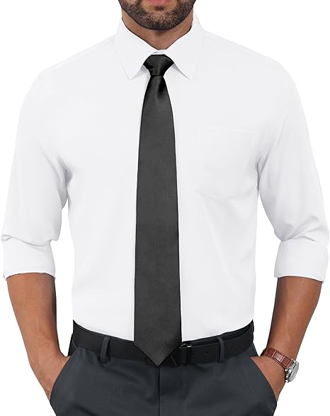 Stretch Dress Shirt Mens Long Sleeve Business Button Down Shirts for Men Flex Fitted Wedding Cotton Wrinkle Free
