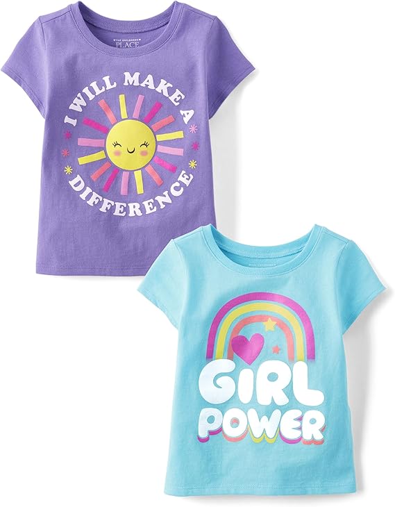 The Children's Place Baby Toddler Girls 2-Pack Short Sleeve Graphic T-Shirt