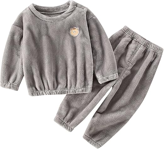 Toddler Baby Boy Girl 2-Piece Fleece Flannel Pajamas Set Winter Warm Matching Sleepwear Pullover Tops+Pants Outfit