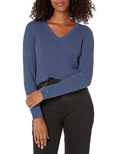 Tommy Hilfiger Women's Lightweight Vneck Cable Sweater, Denim Heather