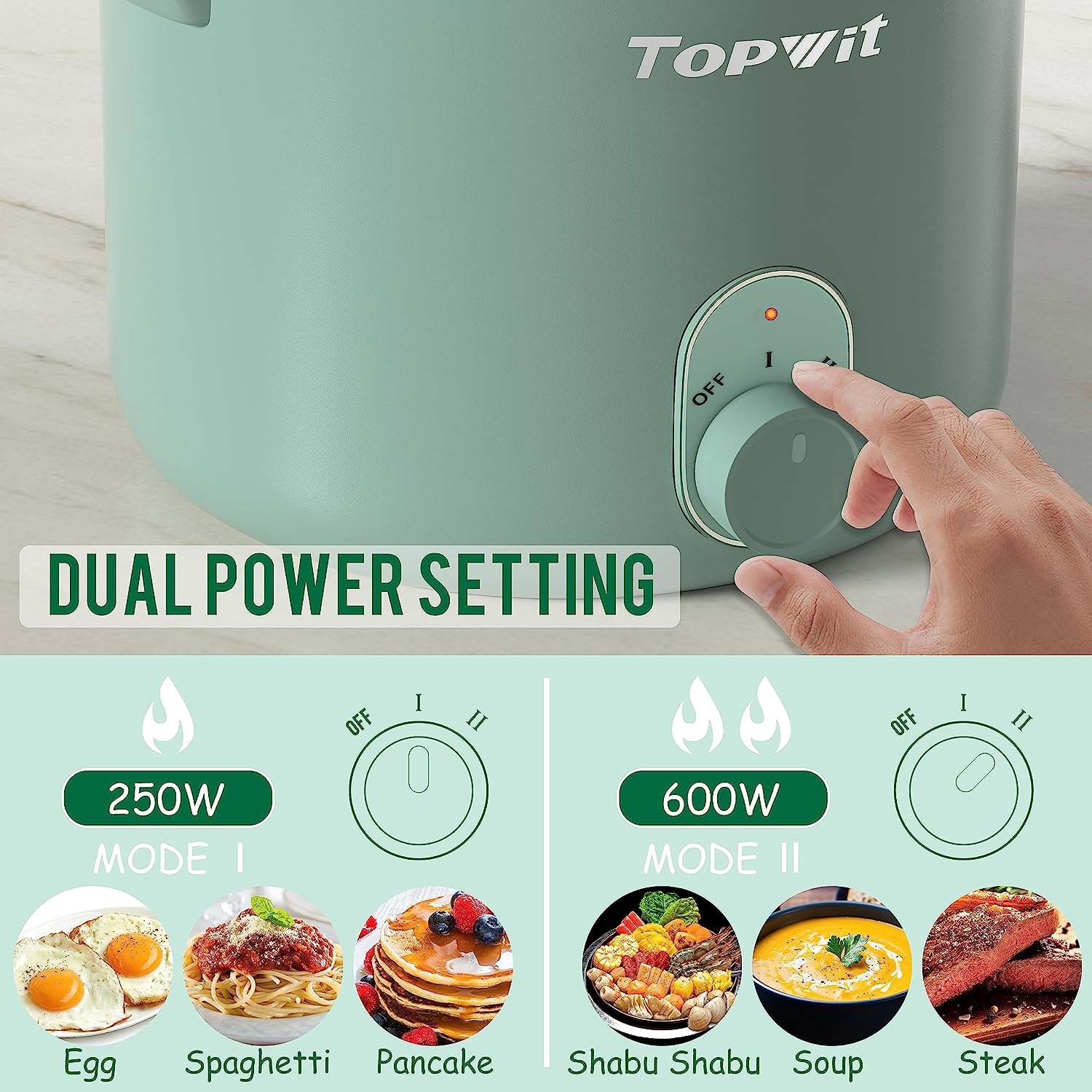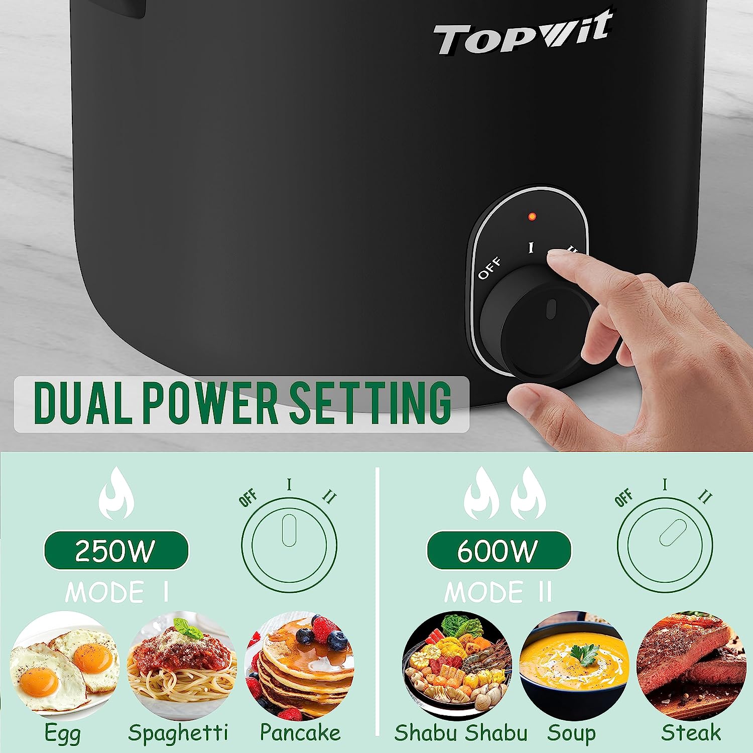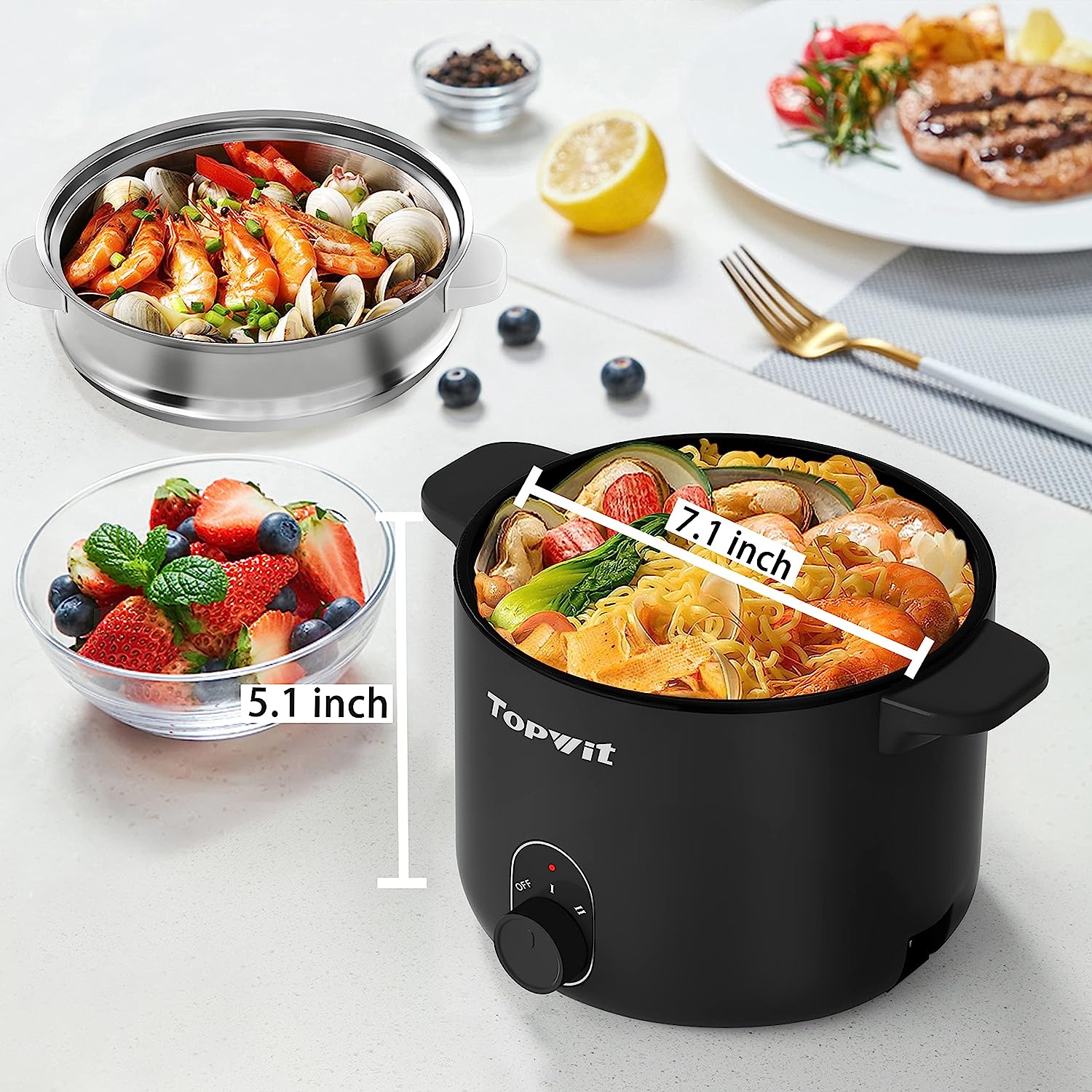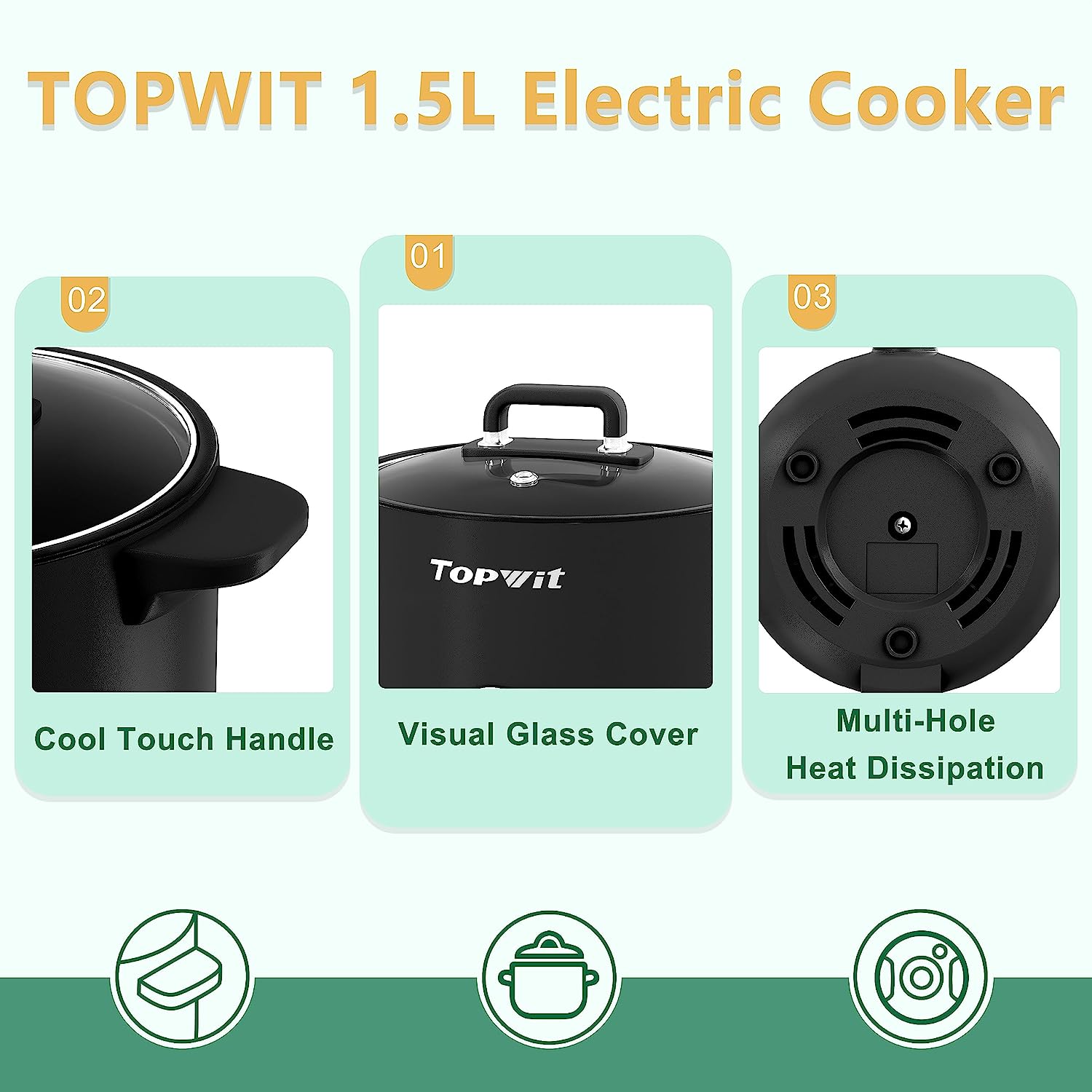 Topwit 1.5L Non-stick Ramen Cooker, Multi-Function Mini Pot for Pasta, Noodles, Steak, Egg, Rapid Noodles Cooker with Dual Power Control, Over-Heating and Boil Dry Protection, Black
