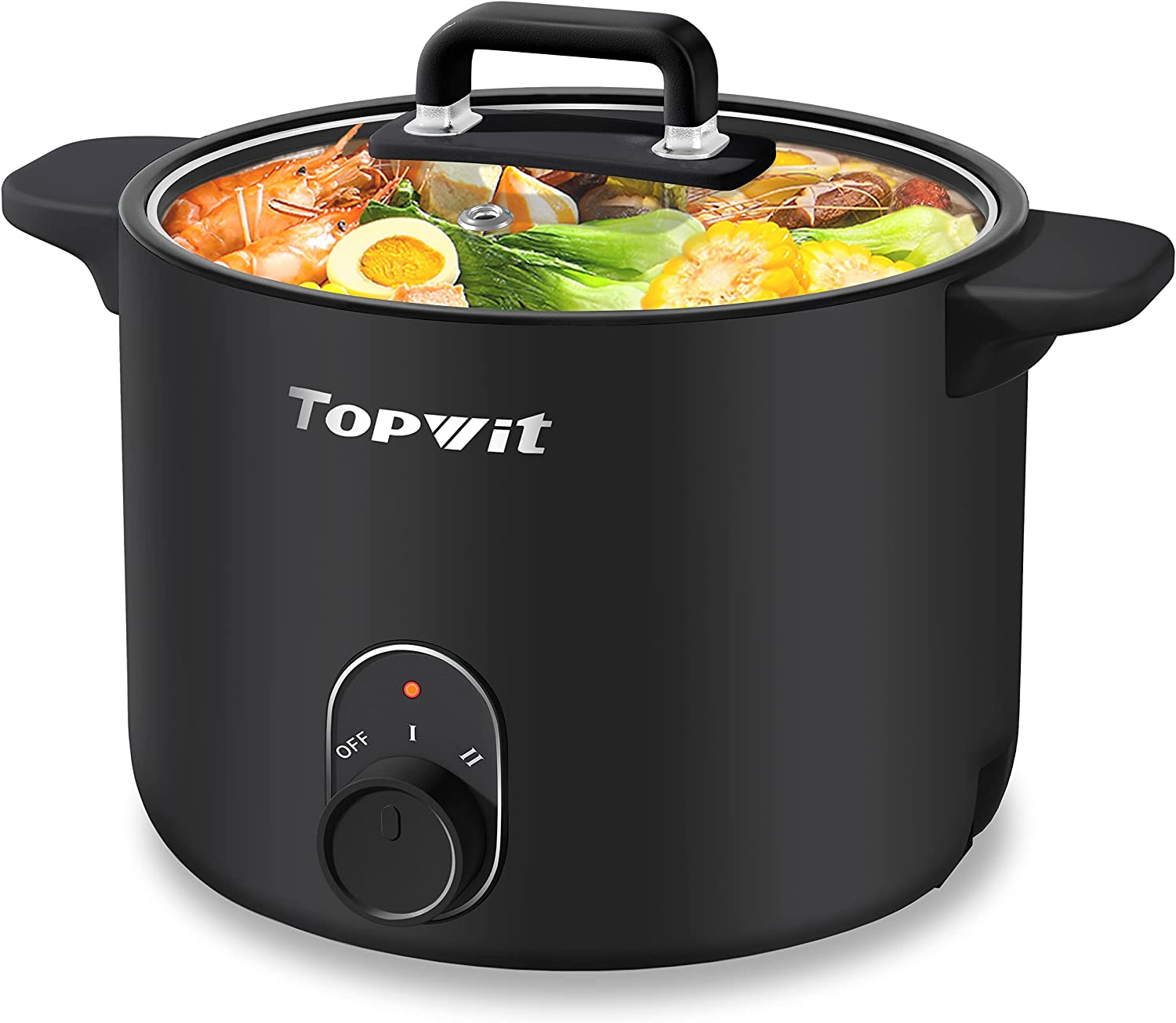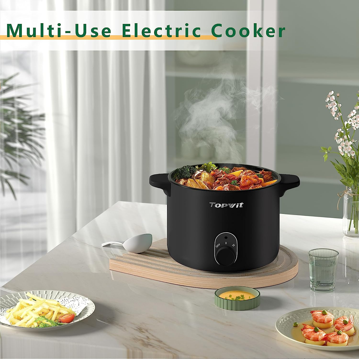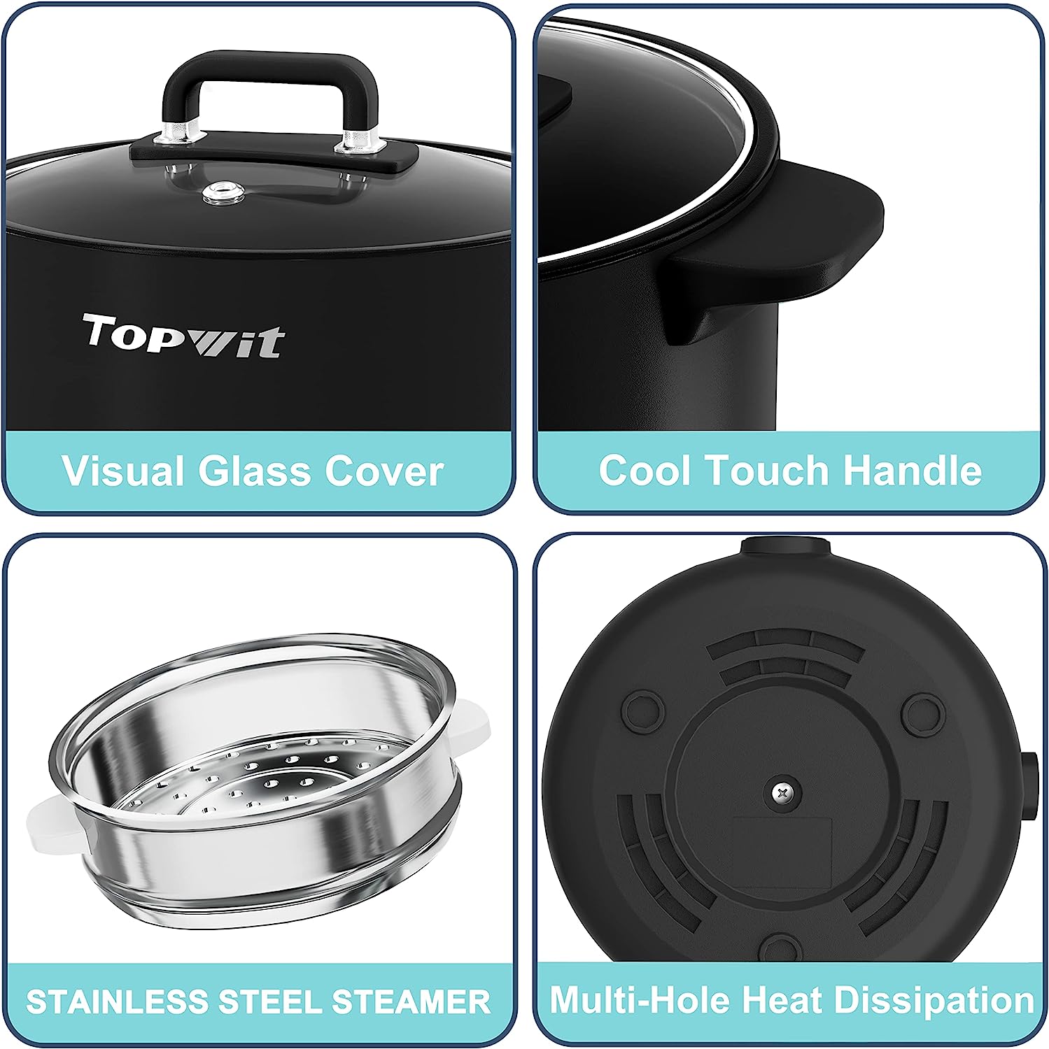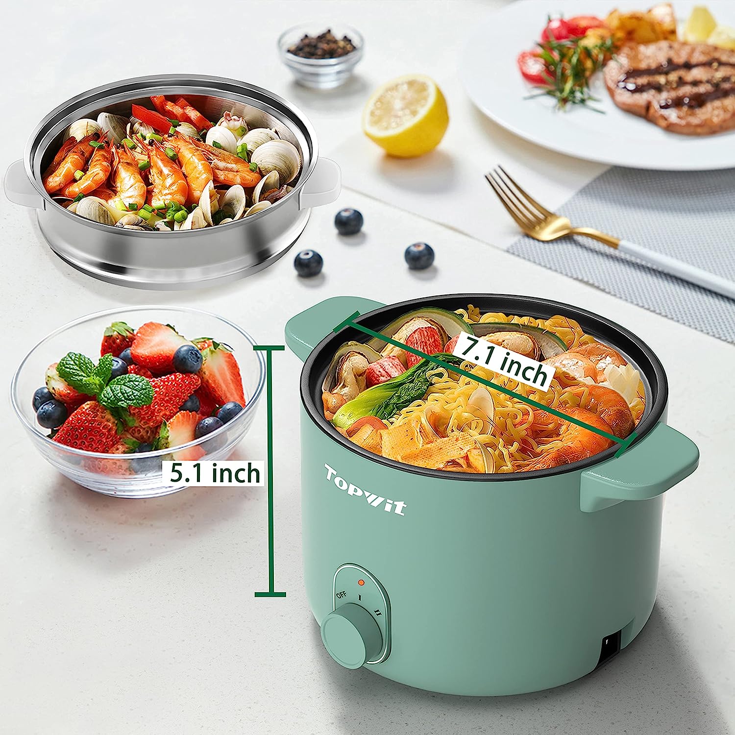 Topwit 1.5L Non-stick Ramen Cooker, Multi-Function Mini Pot for Pasta, Noodles, Steak, Egg, Rapid Noodles Cooker with Dual Power Control, Over-Heating and Boil Dry Protection, Black