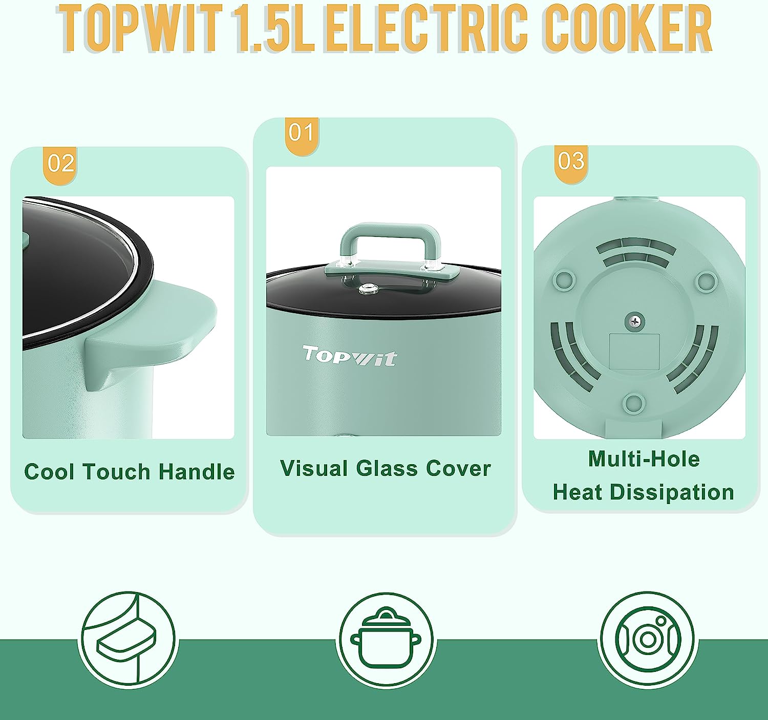 • 【Portable & Easy to storage】 Topwit 1.5L ramen cooker is small in size, easy to carry and store. The mini size and multi-use feature make the cooker more suitable for small kitchens, single apartments, and offices, as well as a dorm room essentials. If you want to take a trip or have a picnic, this little portable pot is also the best choice!