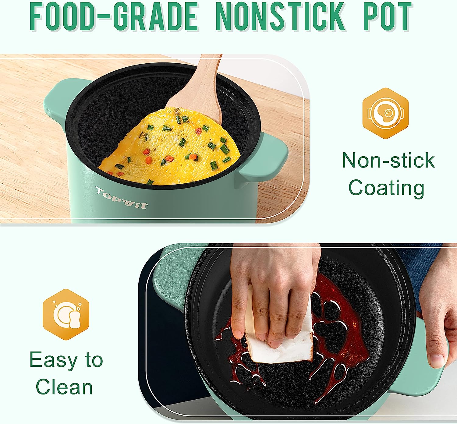 • 【Ideal for Gift】 Topwit pot has a mini size, unique green color and stylish style. With a wide range of cooking usage, this cooker can meet your different cooking needs. It's an ideal gift for your families and friends who love cooking.