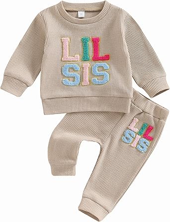 VISGOGO Baby Girl Clothes Lil Sis Big Sis Matching Outfit Long Sleeve Sweatshirt Top 2Pcs Fall Winter Pant Sets