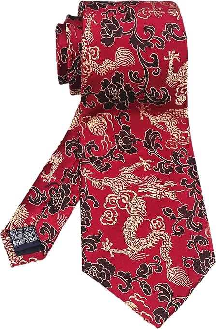 Vizakiss Men's Silk Tie Dragon Peony Embroidery Woven Wedding Formal Neckties Gift 3.54"