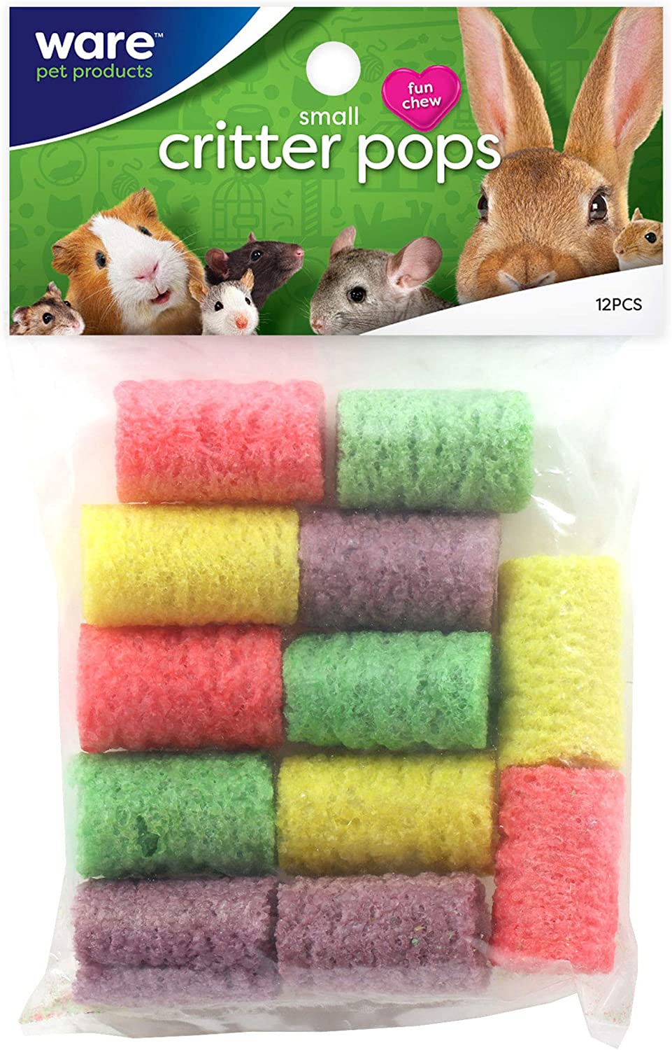 Ware Manufacturing Rice Pops are a wholesome combination of crunchy chews and flavorful fun, made from tasty rice and corn. Ideal for hand feeding or on the ware treat-k-bob, rice pops are a tasty treat for rabbits, guinea pigs, chinchillas, hamsters and pet rats. Promotes clean and healthy teeth and helps overcome cage boredom. Available in small and large sizes. Measures 3/4"DIA x 1-1/2" height
