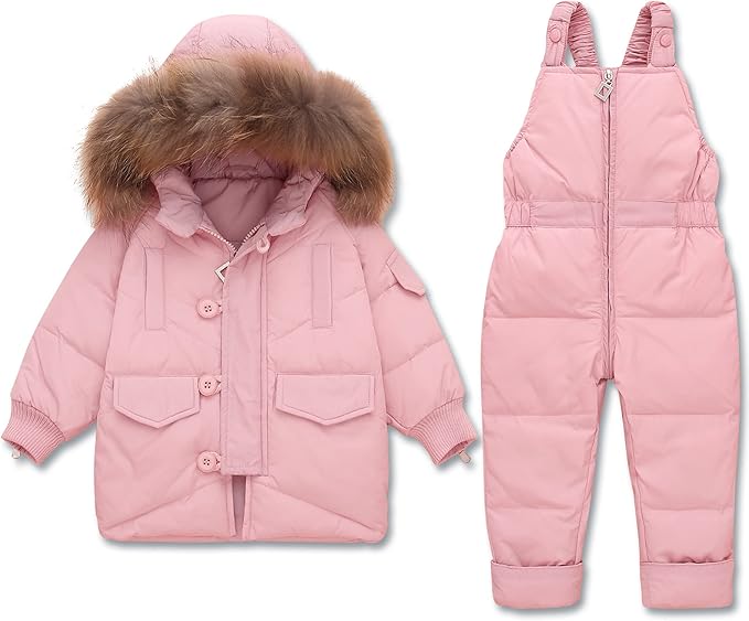 WESIDOM Baby Boys Girls Snowsuit, Toddler Winter Outfit Sets Kids Hooded Artificial Fur Down Jacket Coat and Ski Bib Pants