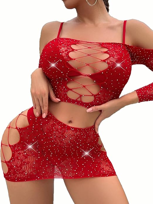 Women Sexy Fishnet Lingeries Mesh Two Piece Lingerie Set Free Size Bra and Panty Sets Exotic Stripper Outfit