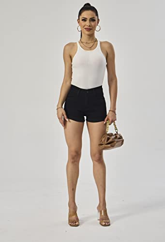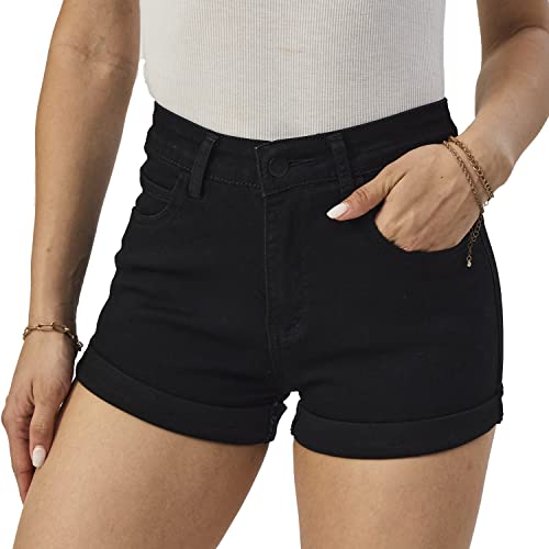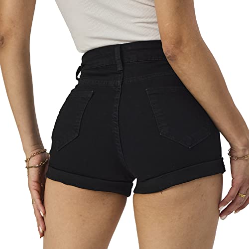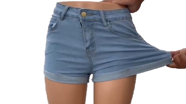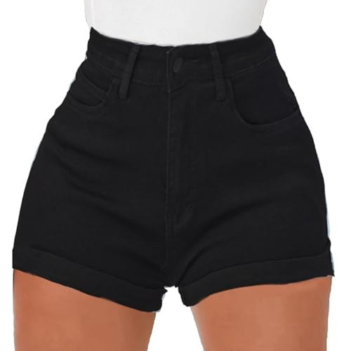 Women's Casual Stretchy Denim Shorts High Waisted Folded Hem Jeans Shorts