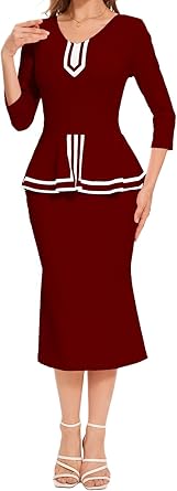 Women's Vintage Mermaid Bodycon Dress Elegant Peplum Work Office Business Ruffle Pencil Midi Fishtail Dress