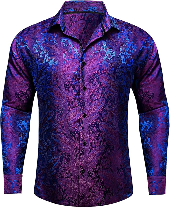 YOHOWA Men's Silk Shirt Paisley Flower Relaxed Fit Long Sleeve Woven Button Down Dress Shirts Formal Party Wedding