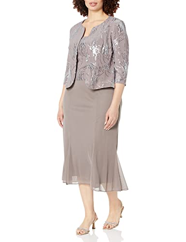 Alex Evenings Women's Tea Length Mock Jacket Dress with Button Front, Pewter/Frost, 10P