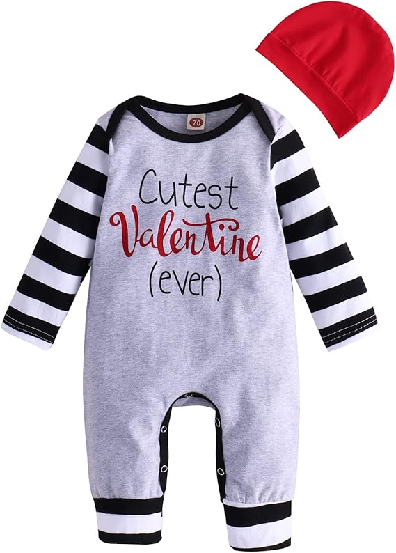 CM C&M WODRO Baby Boy Valentines Day Outfit Romper Long Sleeve Stripe One Piece Bodysuit Jumpsuit with Hat Infant Clothes Set