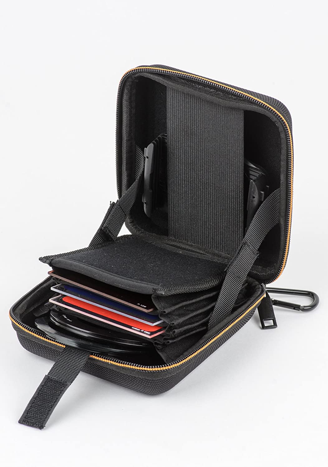 The Cokin 3068 Wallet carries your creative filter system safely. A dedicated slot is designed for your filter holder, in addition to 5 slots for filters, and a special pocket for up to 3 adaptor rings. Its compact design, Included wrist strap and hook makes carrying your filters and Accessories easier, safer and incredibly convenient to pack in your favorite camera bag. The filter slots are equipped with a safety Velcro strap to keep your filters from accidentally sliding out while in use.