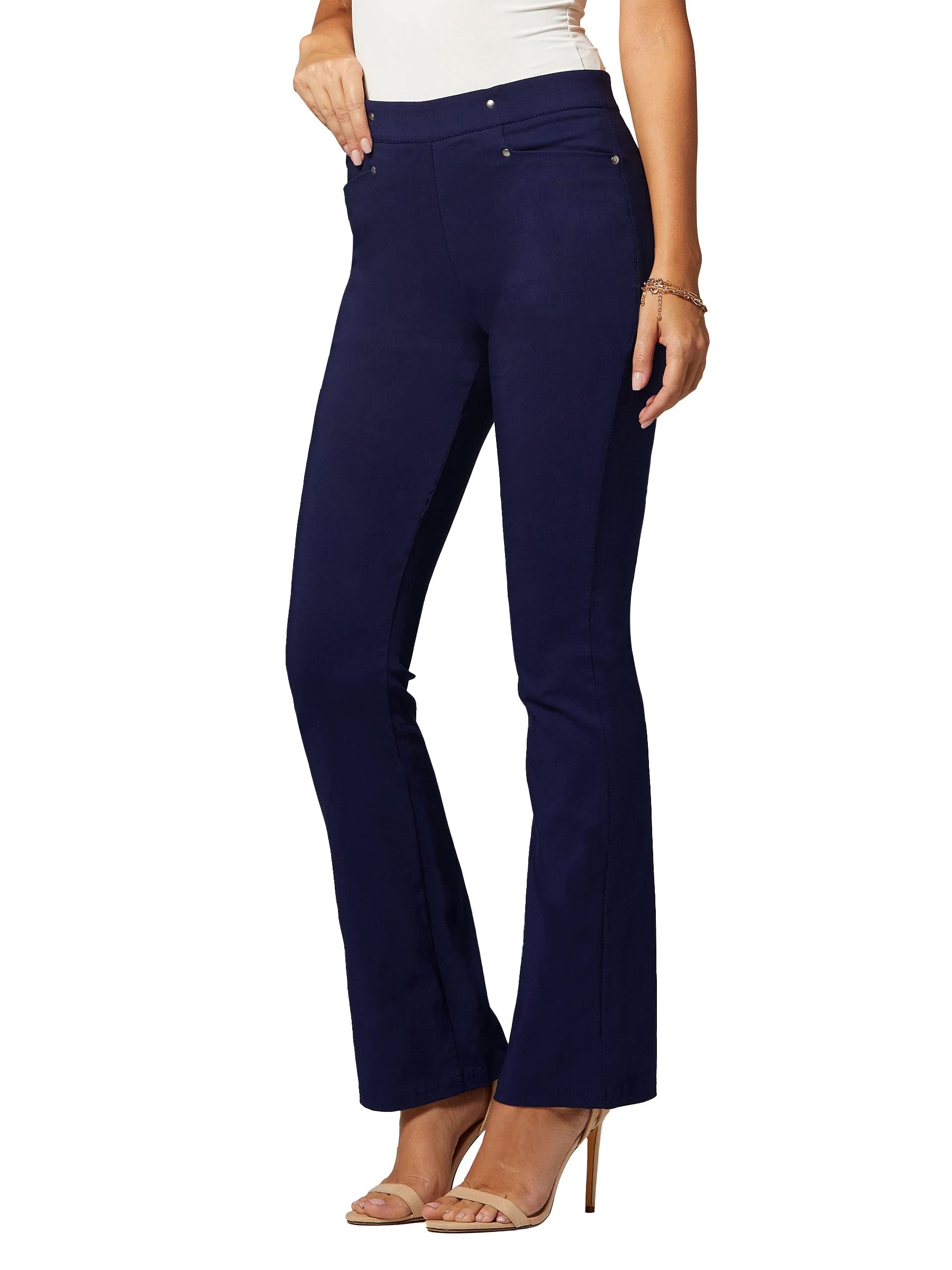 • Pull-on elastic high waistband, makes for easy, relaxed wear to work pants while breathable stretch fabric keeps you comfortable all-day while maintaining a dressy look and feel.